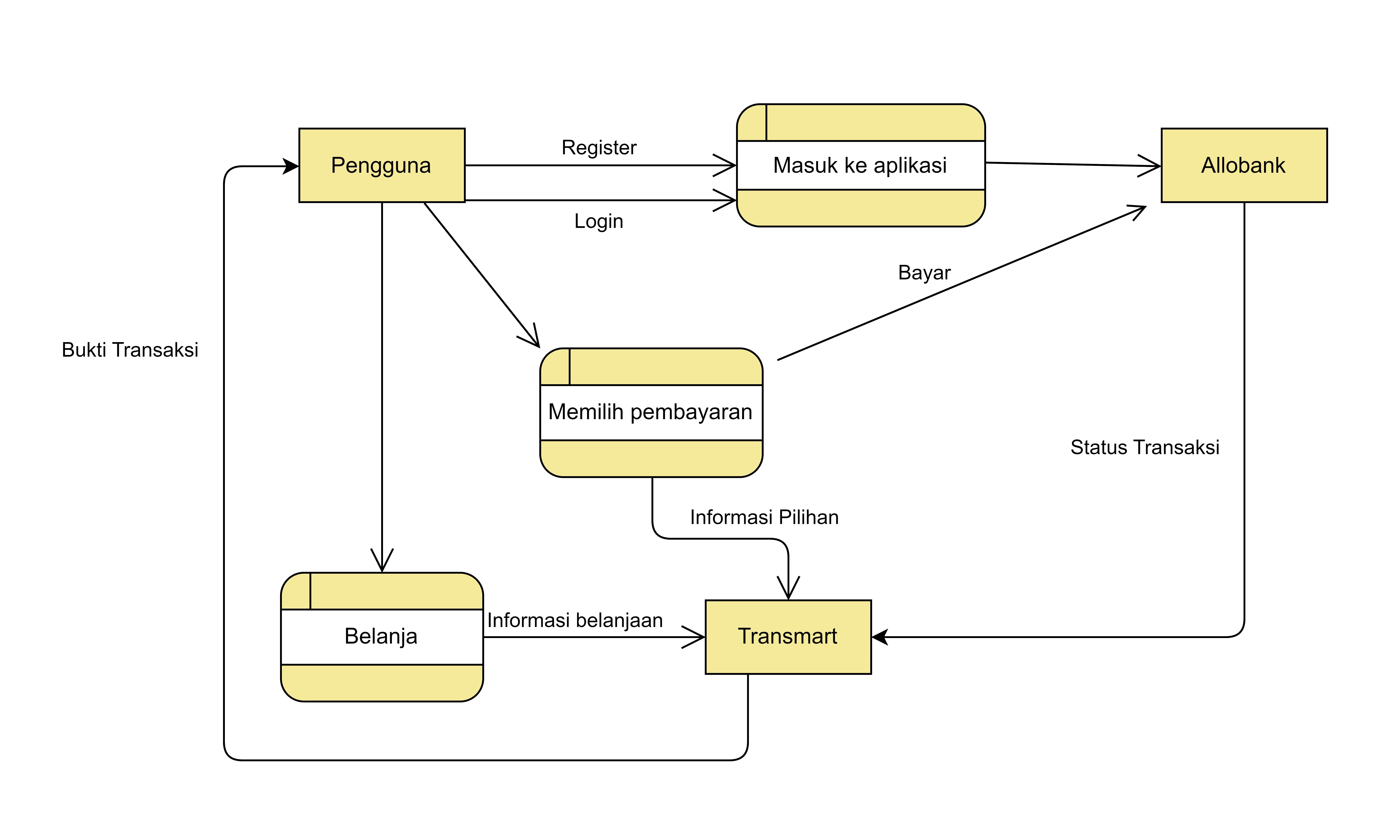 Contoh Data Flow Diagram (DFD) dalam studi kasus Pembayaran di Transmart Menggunakan AlloBank